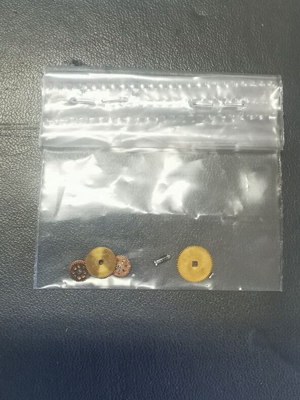 Several components required replacement, including transmission wheels and specific movement screws.